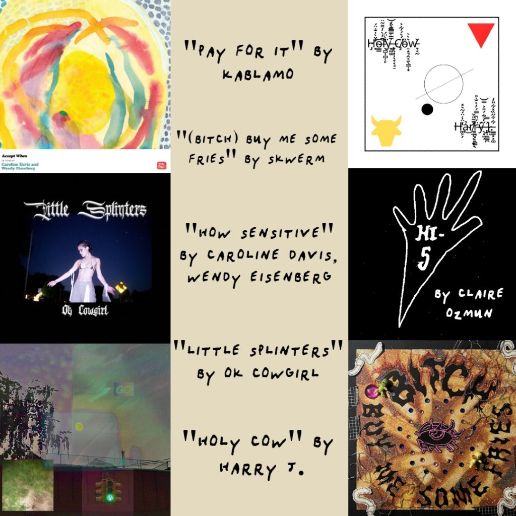Every Friday, a staff member at the ugly hug curates a list of their five favorite new(ish) releases to share with us all. This week, singer-songwriter and team writer Claire Ozmun has put together a track list of chewy lyrical poise, fresh Sunday-morning anthems and brash noisy stunners for us to simmer in.