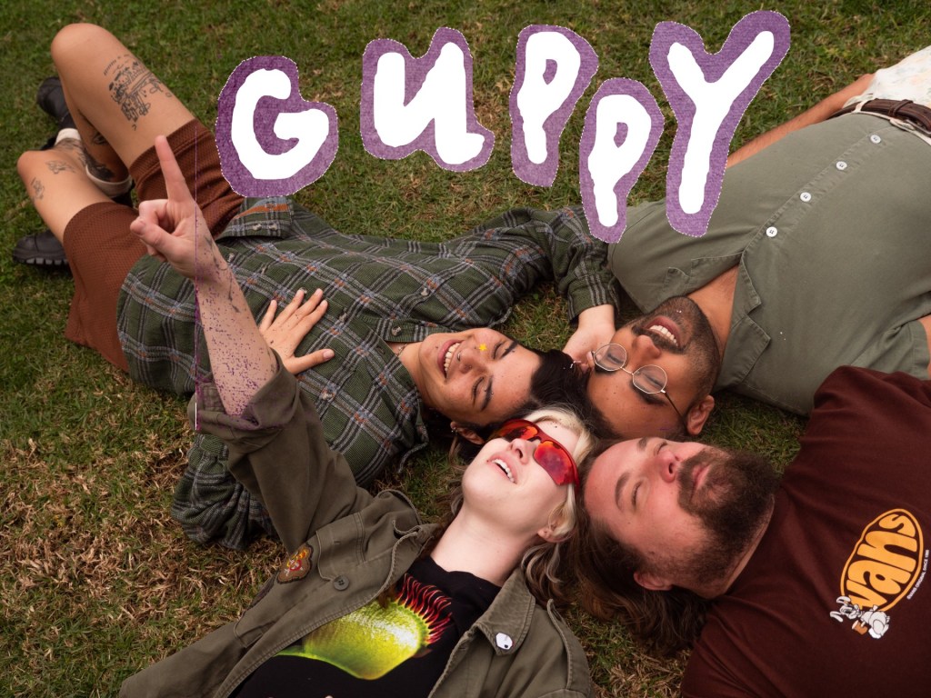 I first met Guppy in a small east LA venue, to which I recognized them for their song “Texting & Driving.” A year later, we sit side by side in booths of my college radio station to discuss the becomings and more of the band. While Guppy identifies themselves as a indie rock band from LA, there’s something to be said about their lyricism and the way they present themselves. Listen in to the world of Guppy and hear us talk about their inspirations, albums, and more!