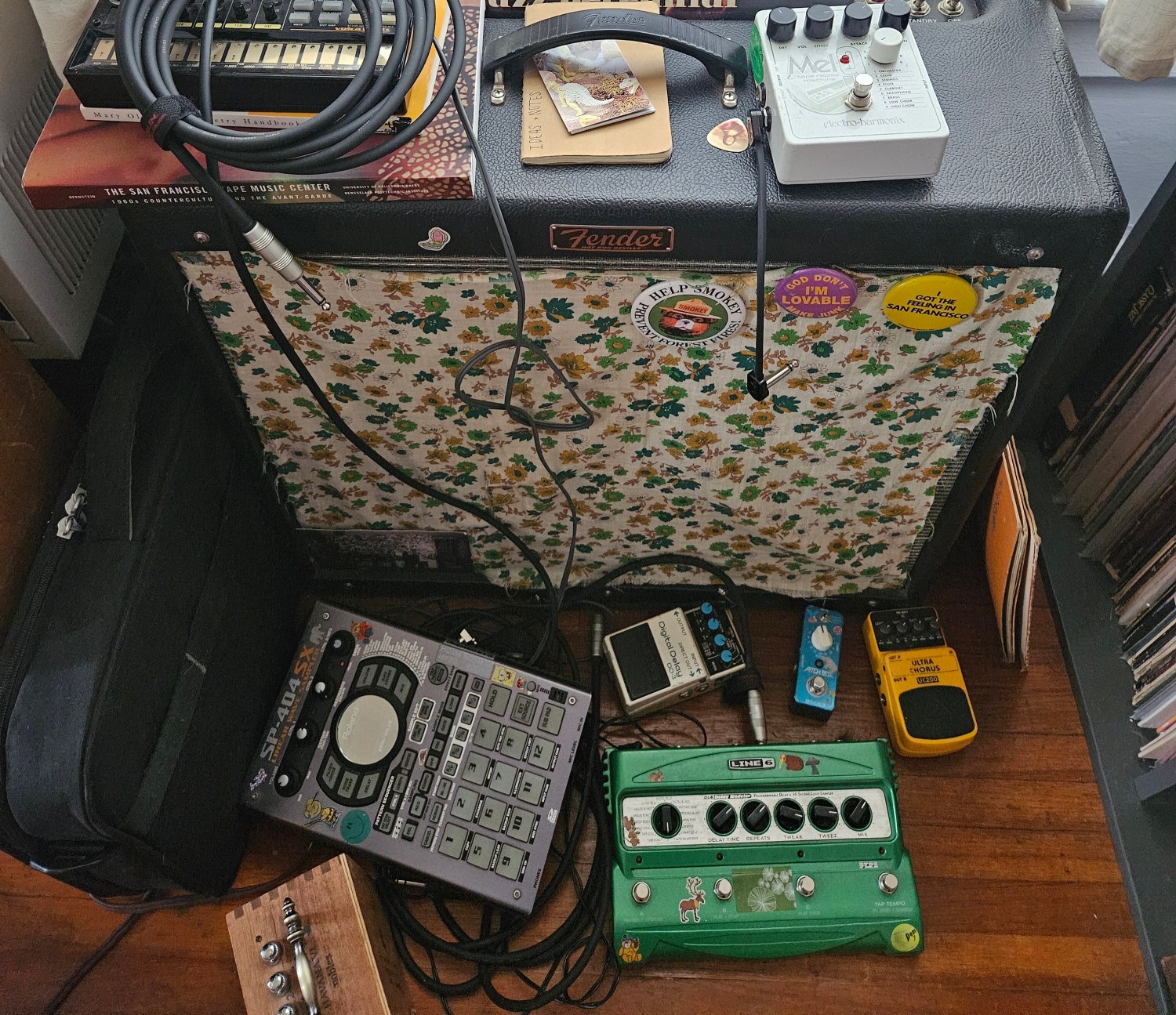 It’s such a unique piece of gear with so many interesting features, like it’s supposed to mainly be a delay pedal, but people use it as strictly a looper mostly. It has a function that speeds up the loop or slows it down, depending on the mode you record it on, and combining loops at different speeds can create an amazing array of shimmery, melty, twinkle-y sounds! It also has a reverse function (with 2 different speeds as well), and has a button to play the loops manually, kinda like a sampler! These are things I discovered while messing around with it and watching YouTube videos to learn more, haha.