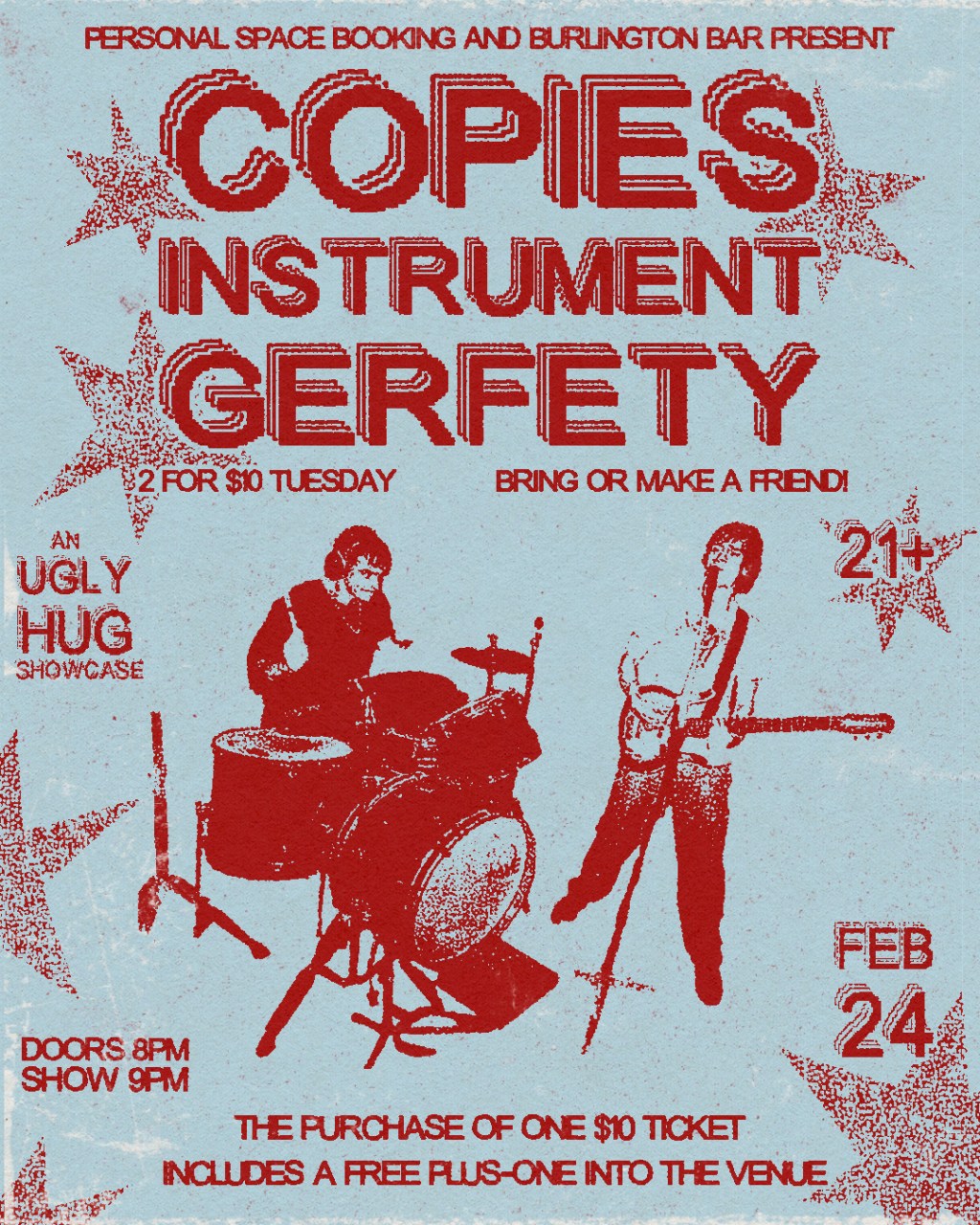 On Tuesday, February 24th, the ugly hug will be hosting our next showcase at the Burlington in Chicago with Instrument, Gerfety and Copies. This showcase is a part of the Burlington’s “bring a buddy” series; 2 entries for 1 $10 ticket. Doors are at 8PM with music starting at 9PM. All proceeds made from ugly hug merch will be donated to OCAD, who provide mutual aid funding for those effected by ICE and deportation.