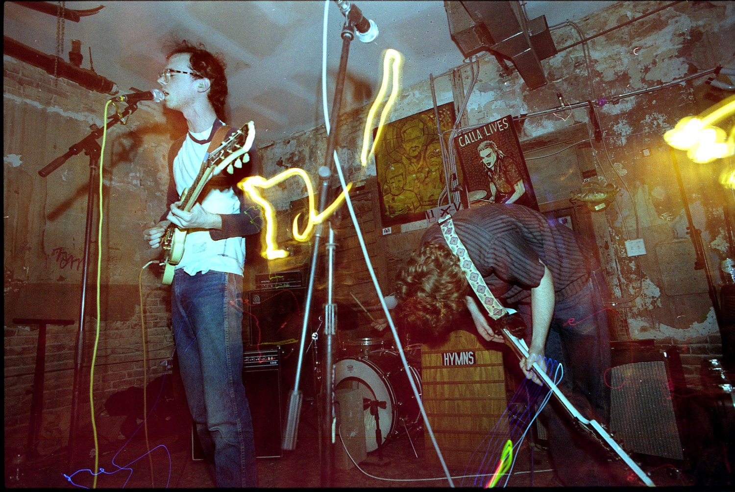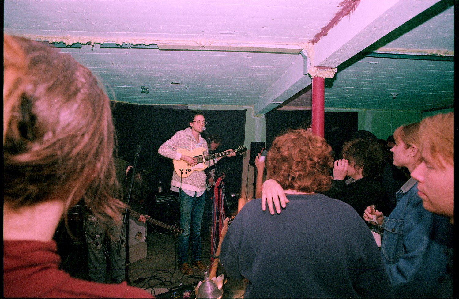 “Two cars and two bands, with long drives and a new party each night. Watching a songbook change form each night and get tired by morning. Memory Card and Kitship’s big road trip.”