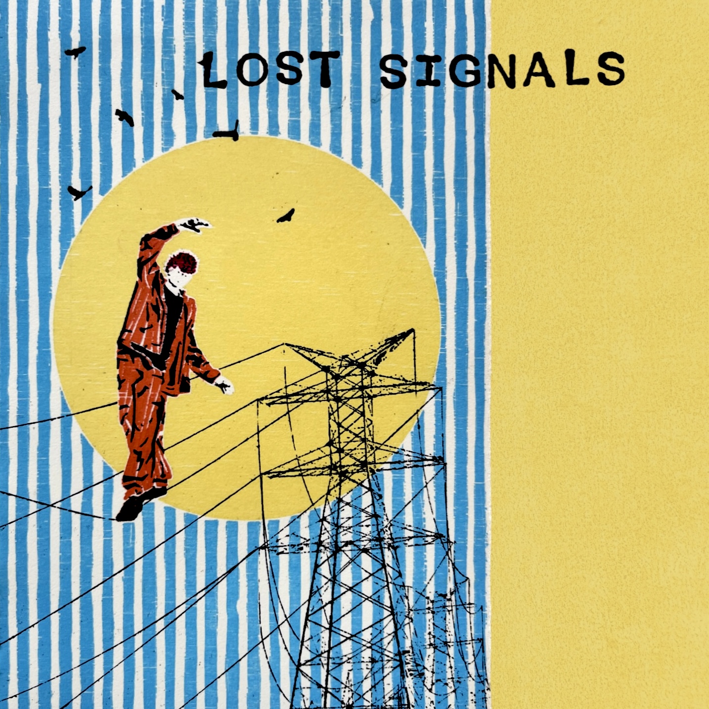 The catalyst to [Lost Signals] coming out when it did was that I met this artist, named Elijah, who had made this print called “High Wire”, which ended up as the cover. It’s the guy on the telephone wires. I remember freaking out because the first song I had was called “Telephone Game”, and it was such a perfect visual. I loved the colors, I just loved his style. There’s a lot of artists in Denton, so it’s really fun to be able to say I have a favorite one. We tried making some different prints, but I was so set on “High Wire”. And at that point, I had a visual now, so I could keep going, and this project could be 20 songs, or I could just put these ones out, and then do something new, because we know that’s how I am. I’m probably gonna want to go in a different direction anyways, so I should just put this out.