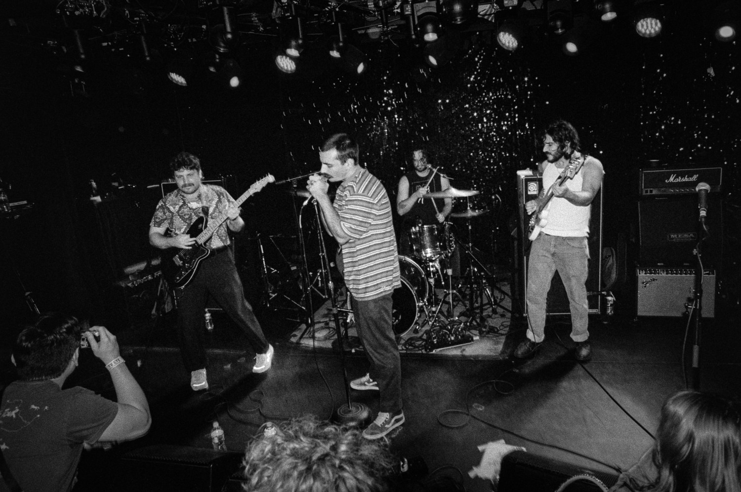 The bloodsports I saw last fall, and the bloodsports you will hear on Anything Can Be a Hammer, is Sam Murphy (guitar/vocals), Jeremy Mock (Guitar), Liv Eriksen (bass/vocals) and Scott Hale (drums). I mentioned that interpersonal context was less crucial than the weight of their relationships, but I will offer a Sparknotes version to the best of my ability. Liv and Jeremy have been friends (and creative collaborators) the longest – the two went to high school in Texas together, where they wrote a song about yearning for an ex partner to rear in their marijuana habit and performed it at Monkey Nest Coffee House (home to the best chocolate muffins in Austin). Jeremy met Sam whilst they were both attending college in Denver – the same city he briefly met Wesley Wolffe, (a founder of Good English, the indie label putting out Anything Can Be A Hammer) who showed the earliest rendition of bloodsports to his then drummer, Scott. Scott was hooked, so hooked he managed to learn the earliest bloodsports songs on drums – which proved convenient when Jeremy and Sam moved to New York on a whim and decided to recruit members via Instagram Story. Liv and Scott more or less joined simultaneously (who actually joined first was a conversation left unsettled that night), and these additions occurred around the same time Sam and Jeremy’s Wayfair couch ruined Liv’s life.