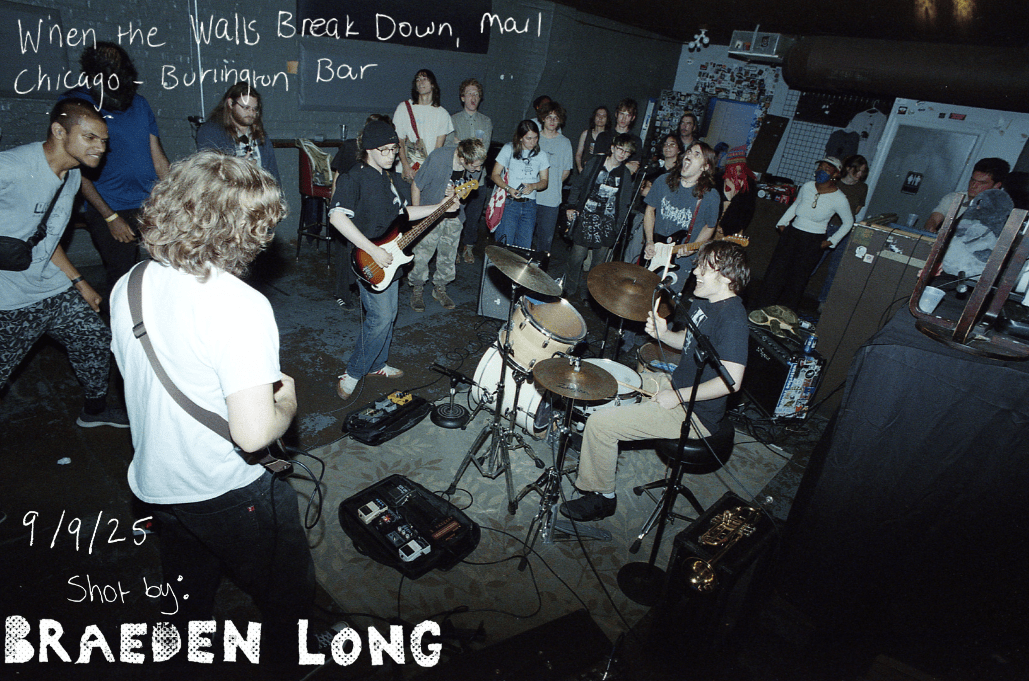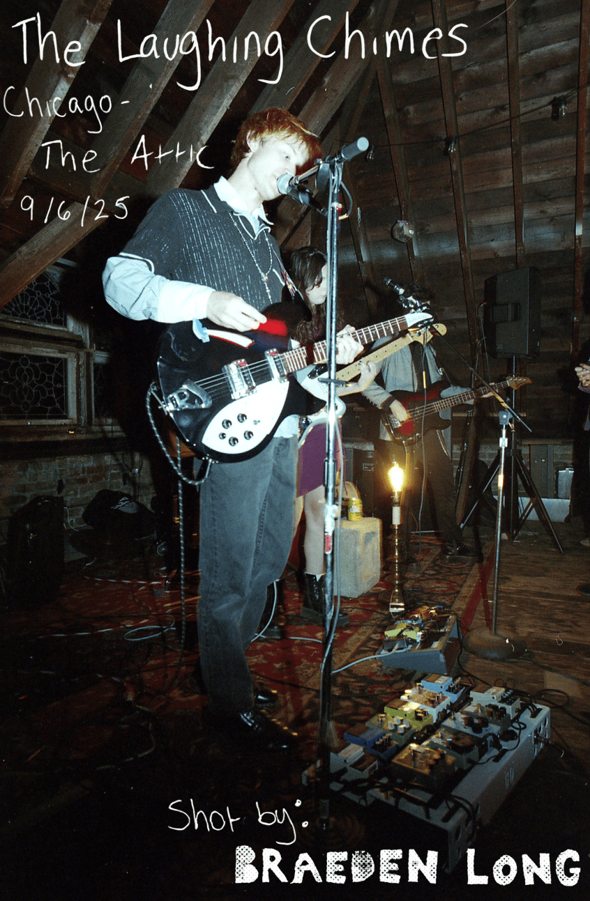 PK welcomes me with his naturally warm smile on this blustery April evening, wearing a navy blue collared shirt, light wash jeans, and white low-top sneakers. Their hair is mixtures of orange, pink, and red like a perfectly scooped order of sherbet ice cream from Margie’s Candies. PK is still on an adrenaline high from a few weeks prior, performing in three separate bands (Free Range, Hemlock, Red PK) on the same night at the tucked-away hole-in-the-wall bar known as The Empty Bottle.